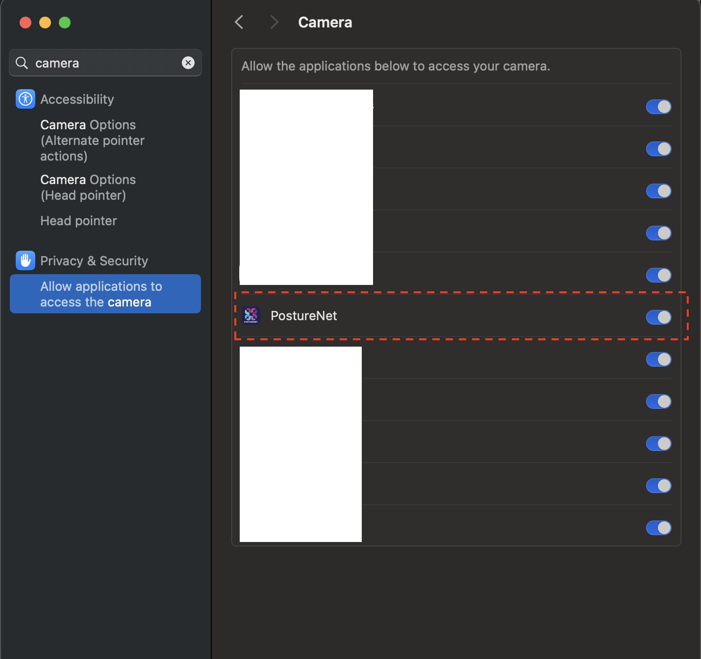 This issue usually occurs when camera access isn't authorized. To fix it, please go to your Settings, find the option to allow applications to access the camera, and make sure to enable Posture Reminder. This should resolve the problem!